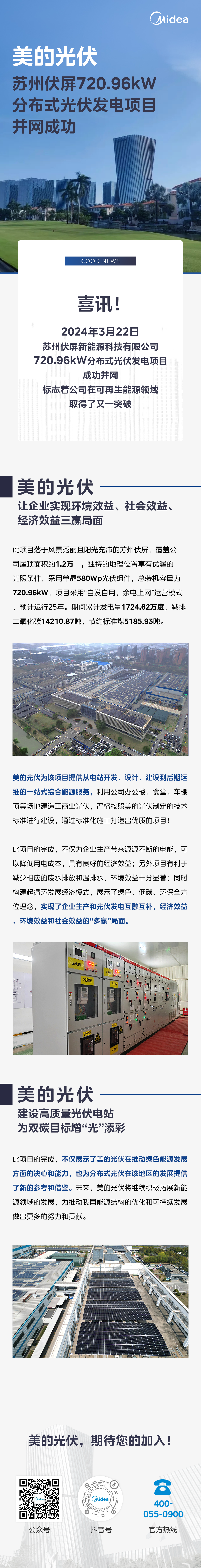 美的光伏蘇州伏屏720.96kW分布式光伏發(fā)電項(xiàng)目并網(wǎng)成功