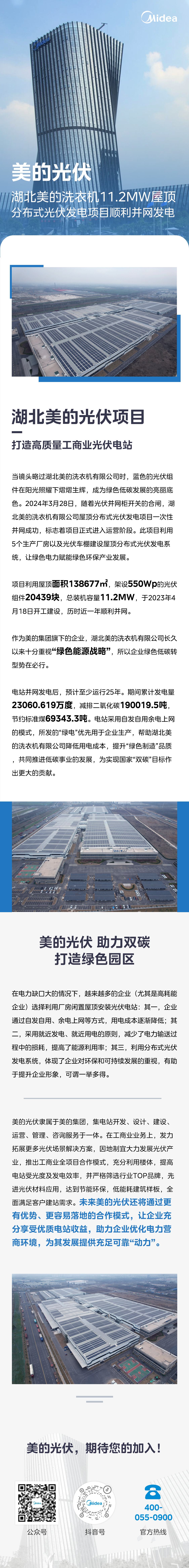 美的光伏 | 湖北美的洗衣機11.2MW屋頂分布式光伏發(fā)電項目順利并網(wǎng)發(fā)電