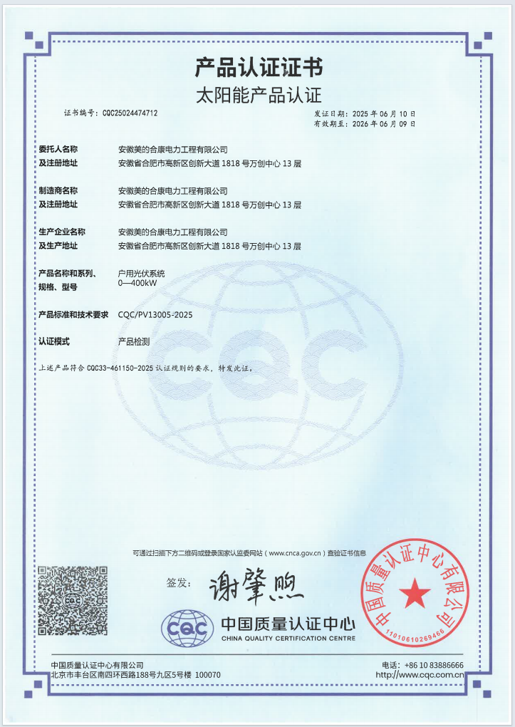 戶用光伏系統(tǒng)CQC認(rèn)證49.7kW-CQC25024474712
